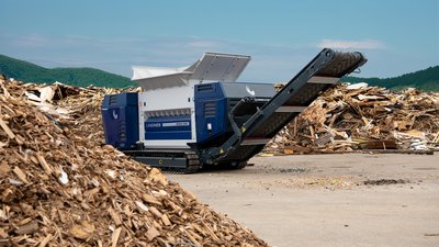 - Mobile, powerful and compact single-shaft shredder with wet-running safety clutch