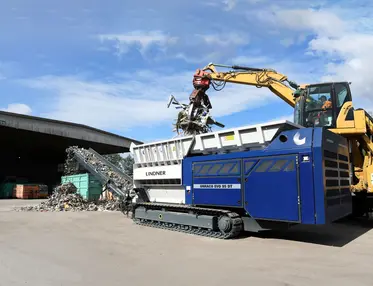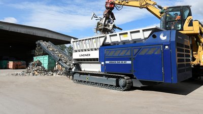 Urraco Evo is Lindner’s new future-oriented series of mobile two-shaft shredders. New to the market, this series scores highly with even more power, a speedier fast-exchange function and the well-known shaft versatility. Whether the assignment is pre-shredding or reducing volume, the focus is not just on wood, plastics, domestic and commercial waste but intentionally also on heavy-duty applications such as scrap metal, mixed scrap and aluminium.