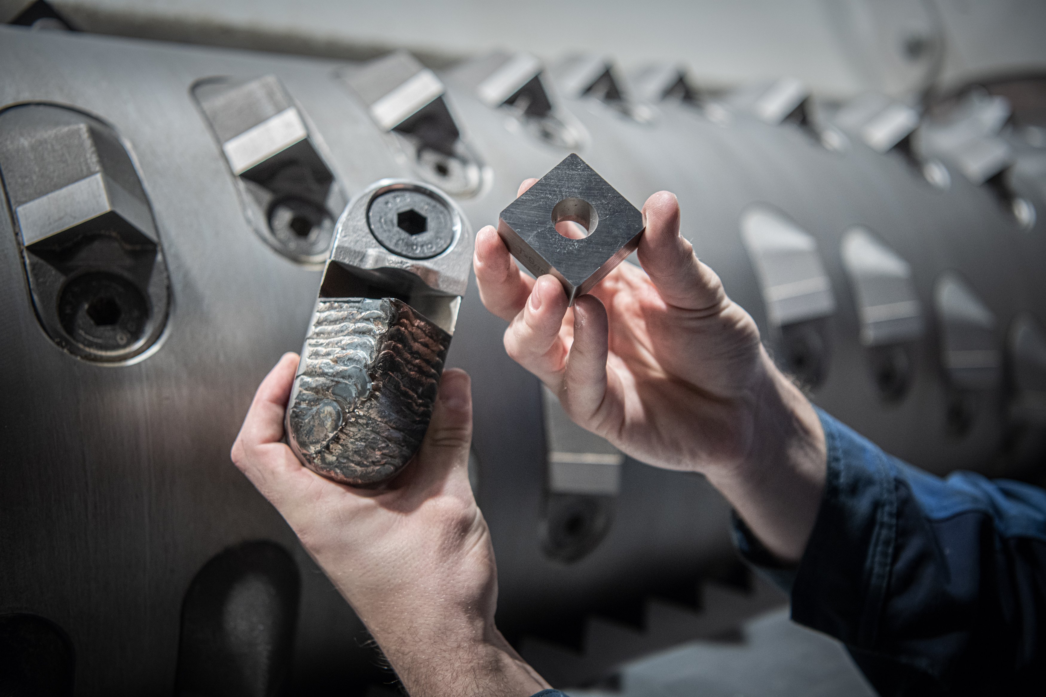 Das Mono-Fix-System erlaubt das Wechseln von Messern und Messerhaltern durch nur eine einzige Schraube. Unterschiedliche Spitz- und Flachmesser sowie Blindplatten und spezielle Gegenmesser, können auch gemischt am Rotor angebracht werden. Das Resultat: